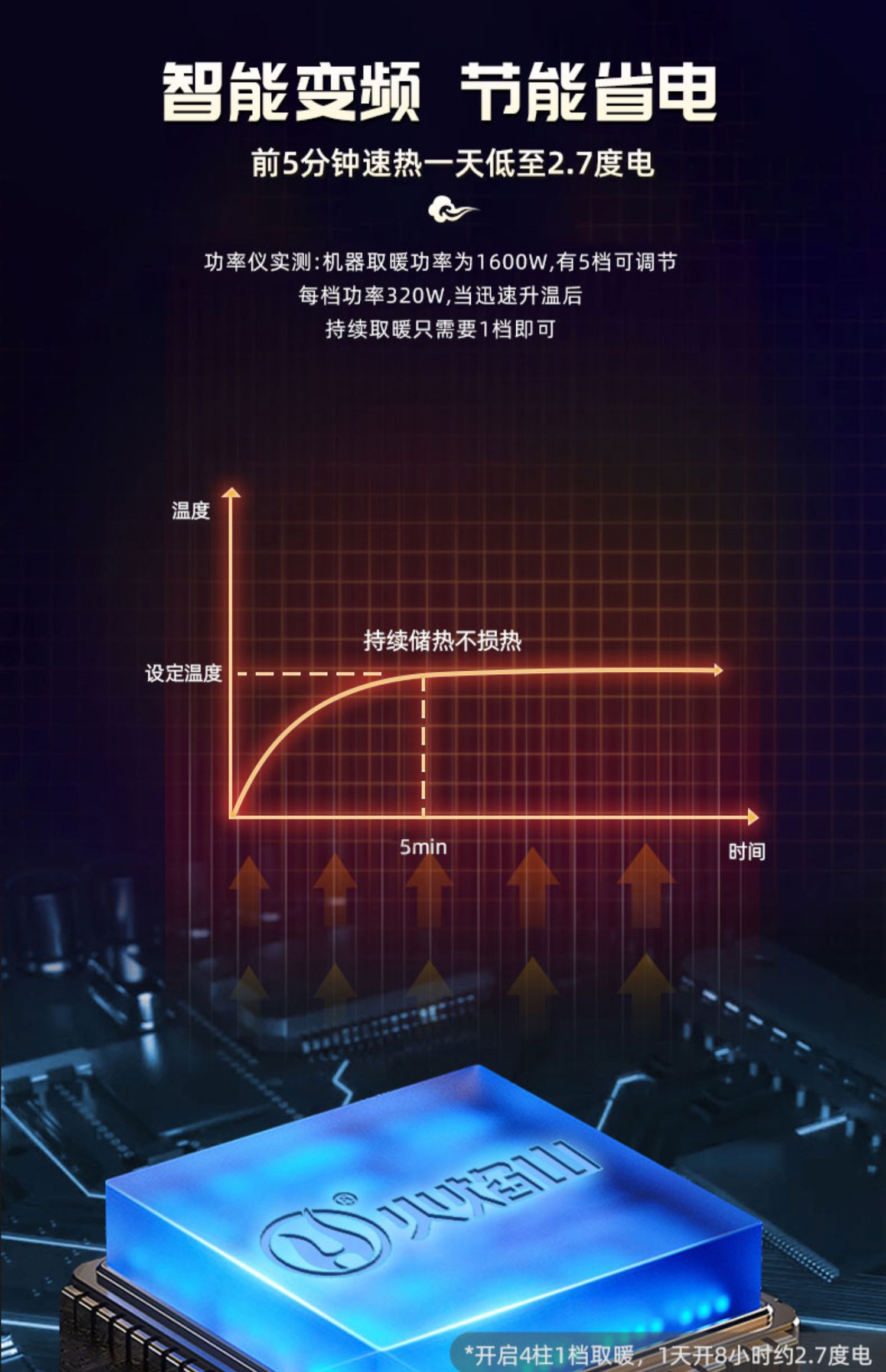 火焰山电暖桌可以提升热效率达98%,高灵敏度传感器,全新算法,无感变频控制,无感自动恒温,节能和舒适的最佳平衡。